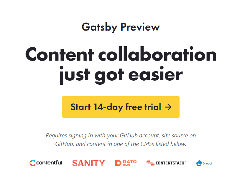 Being an open-source project, Gatsby monetizes its suite of tools by offering a hosted service called Gatsby Preview.