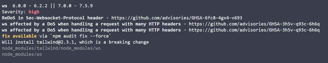 In any of your projects with node packages, you can run npm audit for a detailed view of vulnerabilities assigned to them.