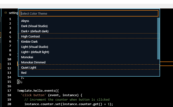 Not so much of an extension but its still nice to see that VSC has a live theme view enabled with some nicely polished themes already integrated.Snippets