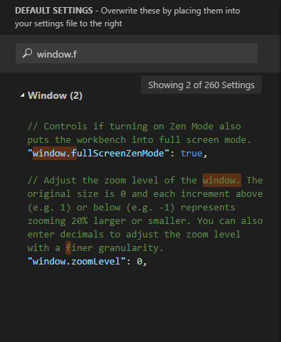 VSC allows us to change the default settings by navigating to File – > Preferences -> User Settings. This will give us a window like so: